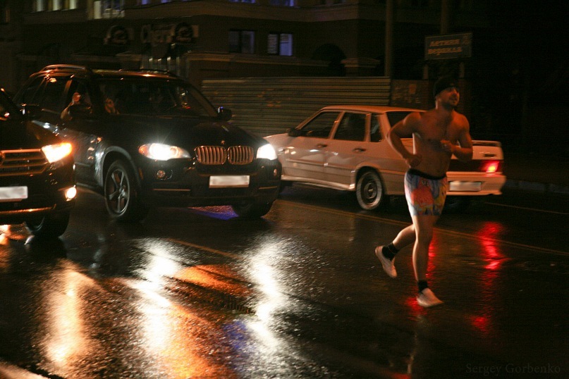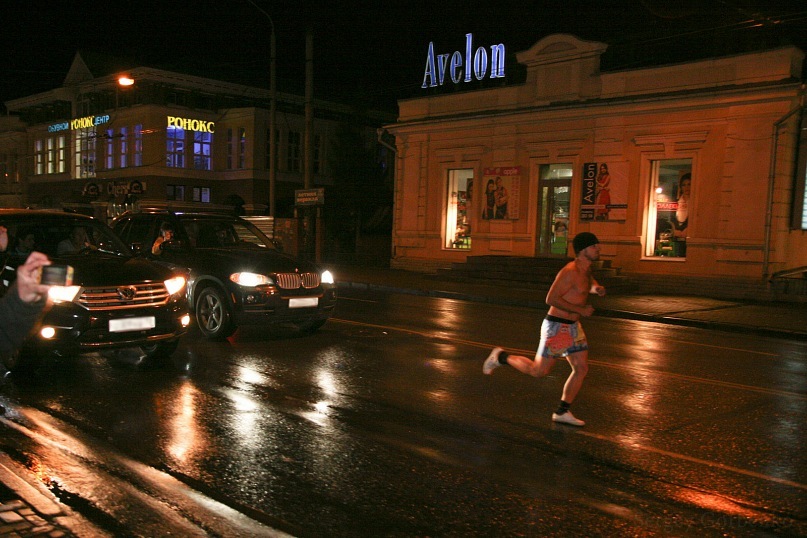 Во время забега Костю сопровождали несколько машин, а по тротуару не смотря на поздний час, шла толпа зевак. Удивительно, но даже милиция не останавливалапарня, молча наблюдая за происходящим.