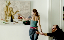 Вовсе не проблема похудения волновала куратора "Каллепиги" Надежду Мельникову. Возвращаясь с очередной выставки, она уныло думала: пипочки, сосочки, галочки – сколько можно! Нет, так жить нельзя. И решила повернуть эротическую тему другой стороной к зрителю. Вернее, той самой стороной, о которой он вожделел, да стеснялся в этом признаться. Первым, кто откликнулся, оказался маститый Александр Шуриц. И принес картину "Лужайка", где юная особа мечтает, лежа на зеленой траве. Это одно из его самых романтических произведений, и, между прочим, одно из немногих на выставке, где попа не обнаженная, а в джинсах. В награду за поступок Шуриц на открытии "Каллепиги" удостоился царского подарка: двух караваев хлеба, водруженных на поднос в виде нашего с вами предмета речи. Недаром его (сей предмет) дети любят называть булочками.