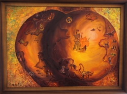 Другие авторы на предложение Надежды Мельниковой откликнулись активным всплеском творчества и тут же создали новые произведения. Знаменитый живописец Данила Меньшиков срочно наваял "Занавес"; керамист Валерий Кузнецов переориентировался на эскизы; Владимир Ремизов в полотне "Терра инкогнита" даже земной шар изобразил в форме Европы. Мобильная Ольга Тээр слепила из дерева, акрила, текстиля фигурки посредников между Каллепигой и любителями бубликов: "Нужно для этого определенные жесты совершать, и они этому научат". А военный психолог Виктор Савельев поставил точку в вечной теме: