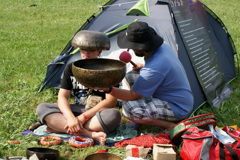 Своей отдельной жизнью, глубоко погруженная в себя, и, в то же время, щедро делясь собой с миром, существовала площадка йога-мудрости фестиваля "ВОТЭТНО!". И в утреннем тумане, и под палящим солнцем, учителя Сибири и зарубежья терпеливо приобщали к мудрости самопознания неофитов и посвященных. Обитатели этой площадки демонстрировали чудеса выносливости – работа на ней начиналась с 7-30 утра и не заканчивалась до темноты.