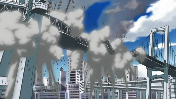 А сам аниме-сериал довольно спокойный, несмотря на то, что вроде бы там все рушится, паника и гибнут люди. Скорее всего, авторы сценария хотели показать людям, и, в первую очередь школьникам, как нужно себя вести в состоянии реальной опасности. И, в то же время, попытаться бороться с типичным подростковым нытьем – ой, меня никто не любит, ой, я ничего не хочу, Ой, до меня никому нет дела, хнык-хнык – и тут, раз, и реальная опасность, а не придуманное нытье. Не знаю, получилось у них это, или нет, но после третьей серии я смотрела на перемотке. Простите меня, конечно, но мне нужно, чтобы все рушилось и взрывалось. А когда люди 10 серий медленно двигаются к дому и долго и много разговаривают – мне скучно. Наверное, в реальной жизни это хорошо и правильно, но смотреть на экране – скучно. И графика довольно убогая, не смотря на то, что это студия "BONES". Люди там – как картонные плоские стенды, хотя кто-то и называет это "своеобразной рисовкой". Зато пейзажи, фоны и немногочисленные разрушения – вполне даже ничего. Но второй раз смотреть не хотелось бы. Я и первый-то на перемотке проскочила. А картинки постаралась выбрать получше.