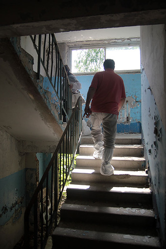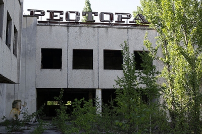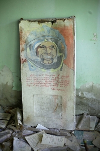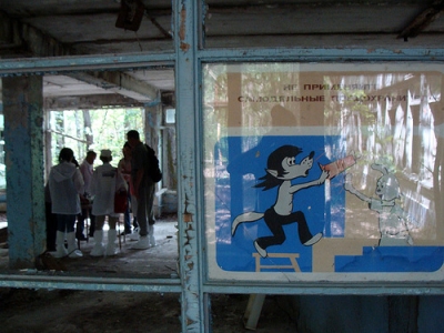 Особенно вдохновляет на деяния оптимистический финал "Чернобыля". Кинокамера дает общий план отравленной 30-километровой зоны, залитой солнцем. Жители покинули свои дома, но обязательно вернутся; города и поселки будут восстановлены, их ждет счастливое будущее – свято верили и строители, и кинодокументалисты. Фотографии Сергея Тарасова, показанные сразу после фильма, возвращают с небес на землю. В буйных джунглях прячутся полуразрушенные дома, на стенах которых – жуткое и одновременно прекрасное граффити. На школьной доске сохранились надписи мелом, но окна выбиты, стулья перевернуты, пол усыпан штукатуркой. Изувеченные временем детские игрушки символизируют морок.