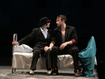 Кого-то завсегдатаи РФ ждали как старого знакомого, регулярность встреч с которым дает перманентный творческий тонус, очищает душу, настраивает на лучшее. Константин Райкин приезжал в пятый раз, Сергей Юрский – в третий. На прошлом фесте публика познакомилась с латвийским режиссером Алвисом Херманисом, привозившим спектакль по произведениям русского классика – "Рассказы Шукшина", и вот он опять устроил парадоксальное знакомство с нашим родным языком. "Соня" по рассказу Толстой, которую Херманис поставил у себя в Новом рижском театре, - совершенно новое, ошеломляющее, парадоксальное прочтение классики, аналогов которому трудно отыскать. Спектакли Херманиса, как пишет критик Марина Давыдова, "могут примирить отчаянного западника и яростного славянофила, любителя продвинутого артхауса и певца простых театральных форм".