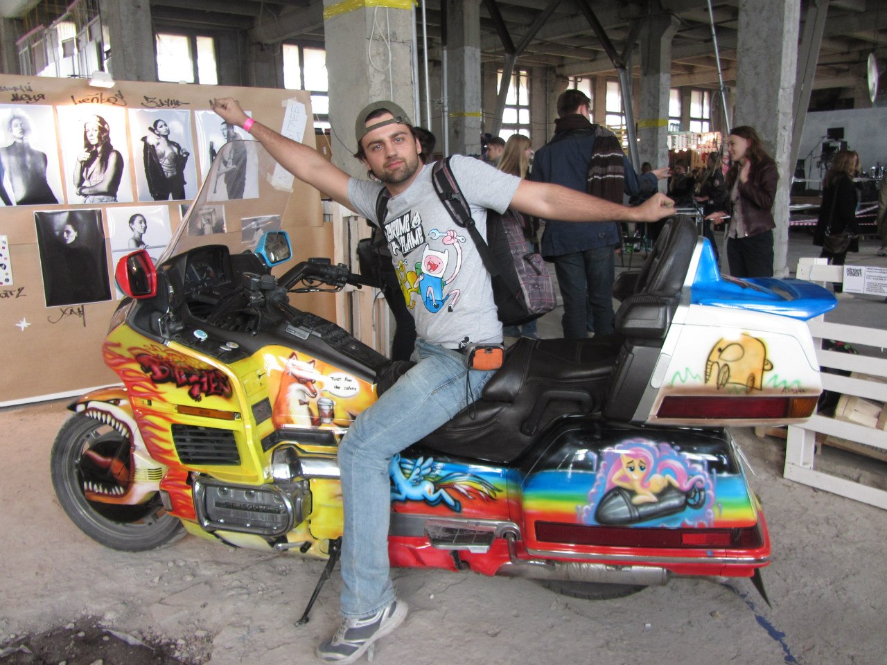 Вот что играло и взаимодействовало с посетителями во время работы фестиваля – расписанный аэрографом мотоцикл Honda, принадлежащий Сергею Фирсову. Как раскрасить железного коня, придумали Гуля Юлдашева – художник креативной студии AeroArt вместе с хозяином средства передвижения. «Долго не могли решить, что рисовать. В шутку наши мысли насчет пони и радуги совпали», - пояснила Гуля.