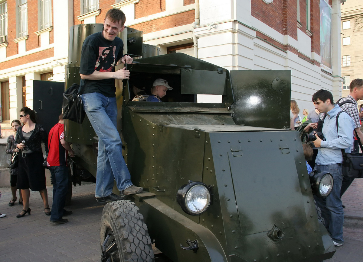 С исторической модели бронеавтомобиля Веревочкина В. В. не слазили дети и особо игривые взрослые. У "Зебры" не истощалась очередь желающих посидеть за рулем ретромобилей.
