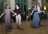 Не обошлось в этот вечер без Гоголя: молодые художники провели "шинельную" акцию. Завершилась "Ночь" балом в лучших традициях XIX века: фортепианная музыка и соответствующие одежды. На балу присутствовал сам господин Хлестаков, помогавший присутствующим разучивать классические танцы. Станцевать польку на троих рискнули далеко не все господа: сколько ответственности – вести за собой в танце сразу двух дам, но самые стойкие из них были вознаграждены поклоном и реверансом.