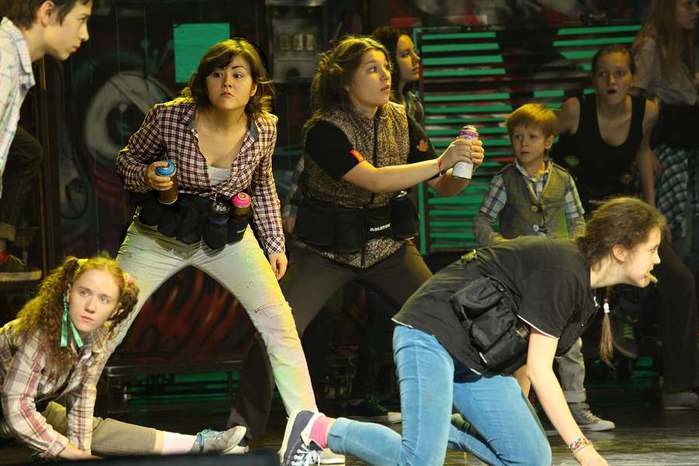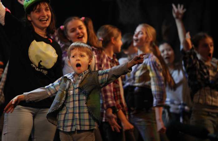 Дети работали наравне со взрослыми — как старшеклассники, так и самый младший участник спектакля, шестилетний каратист Артем. В предпремьерные дни репетиции проходили с утра до вечера. Спрос был по Гамбургскому счету, без скидок на малолетство. Режиссер Айнур Сафиуллин разговаривал с командой без экивоков: