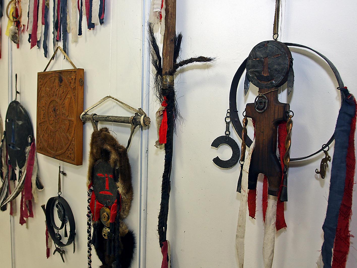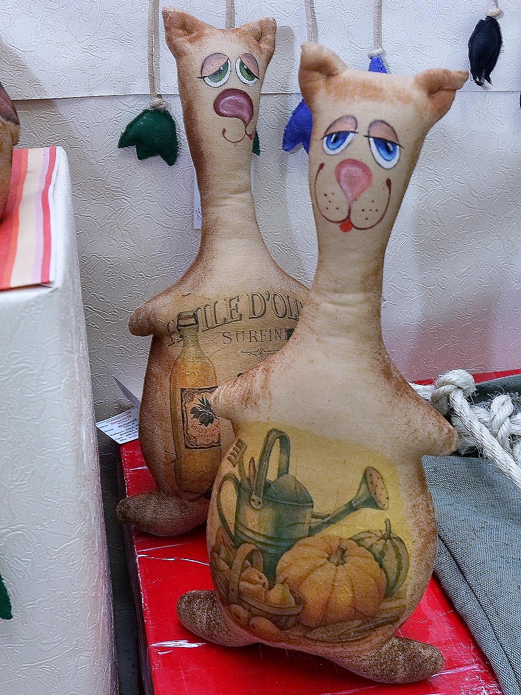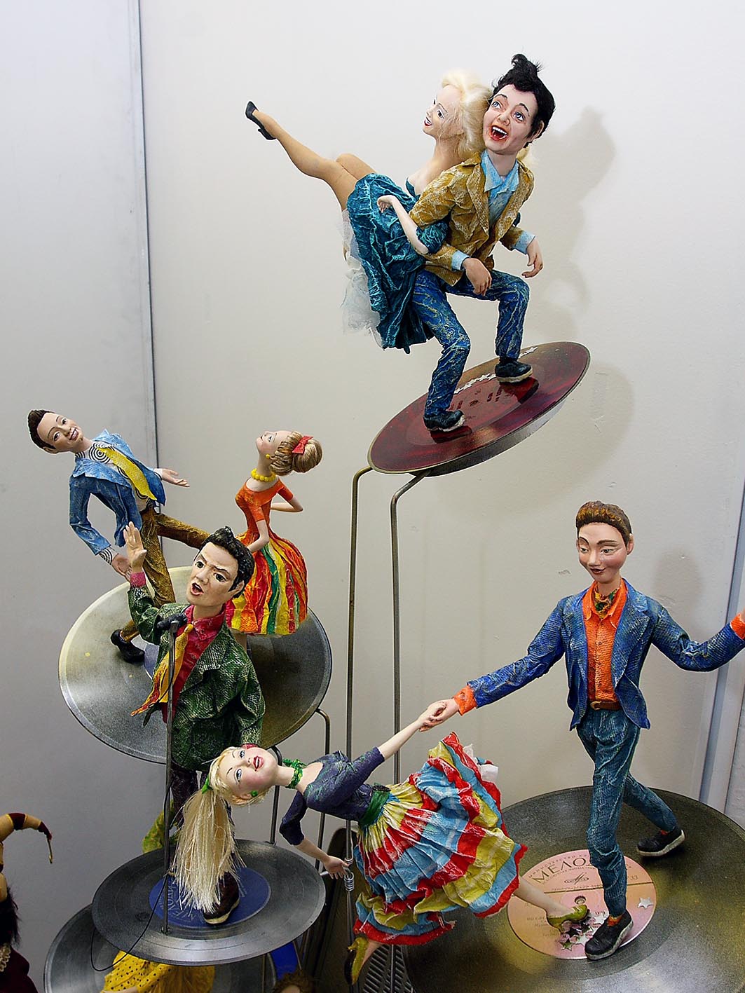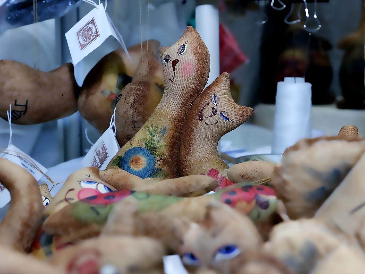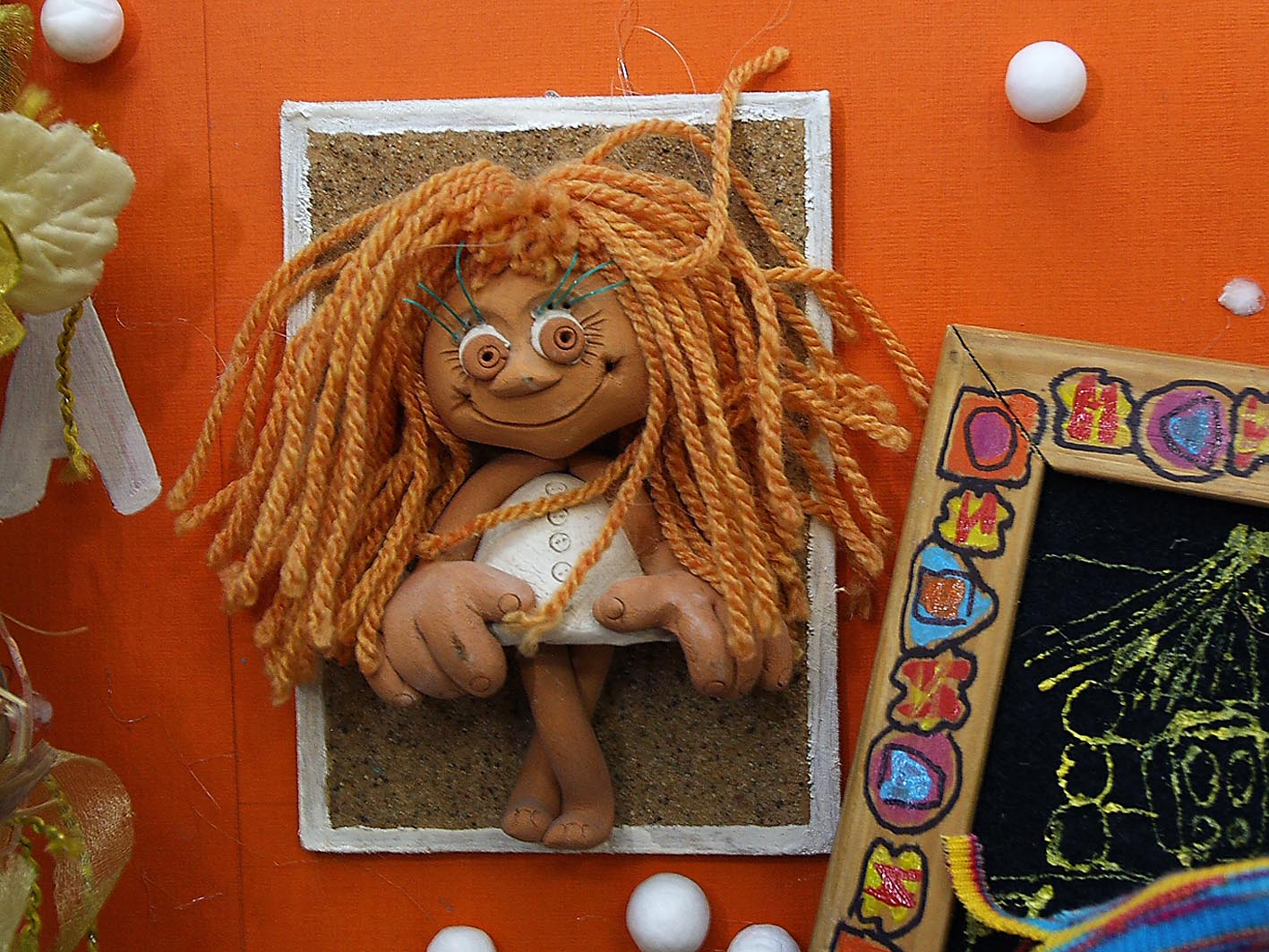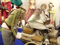 Но есть на стендах и более "бюджетные" или, душевно называемые авторами, "чердачные" куклы. Затейливые фигурки, крашенные кофе с корицей и ванилью, – стоят они от 200 рублей. Есть керамика, есть творенья из папье-маше и бересты, есть панно, гобелены, русские народные костюмы, резное дерево, роспись… Впрочем, среди всего изобилия забавного и фантастического, сделанного "взрослыми", умелыми, руками, особо очаровывают детские работы. Они, сразу скажем, увы, не продаются, а лишь участвуют в Третьем сибирском кукольном карнавале и биеннале детского кукольного искусства.