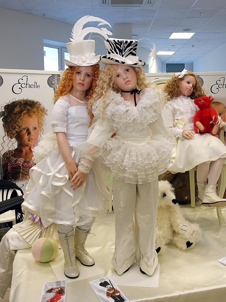Фрау Гюнцель – одна из самых именитых в мире мастеров-кукольников. Когда-то (38 лет назад) она сделала первую куклу в подарок сынишке. Кукла была тряпочная и, как говорит сама мастерица, неказистая, но именно она стала предшественницей будущих принцесс, юных пастушек, героинь сказок, волшебниц и танцовщиц. На выставке можно увидеть даже уникальный экспонат по российским мотивам – "княжну Ксению" в компании со знаменитым мишкой Альфонсо – "визитной карточкой" компании Echelle.