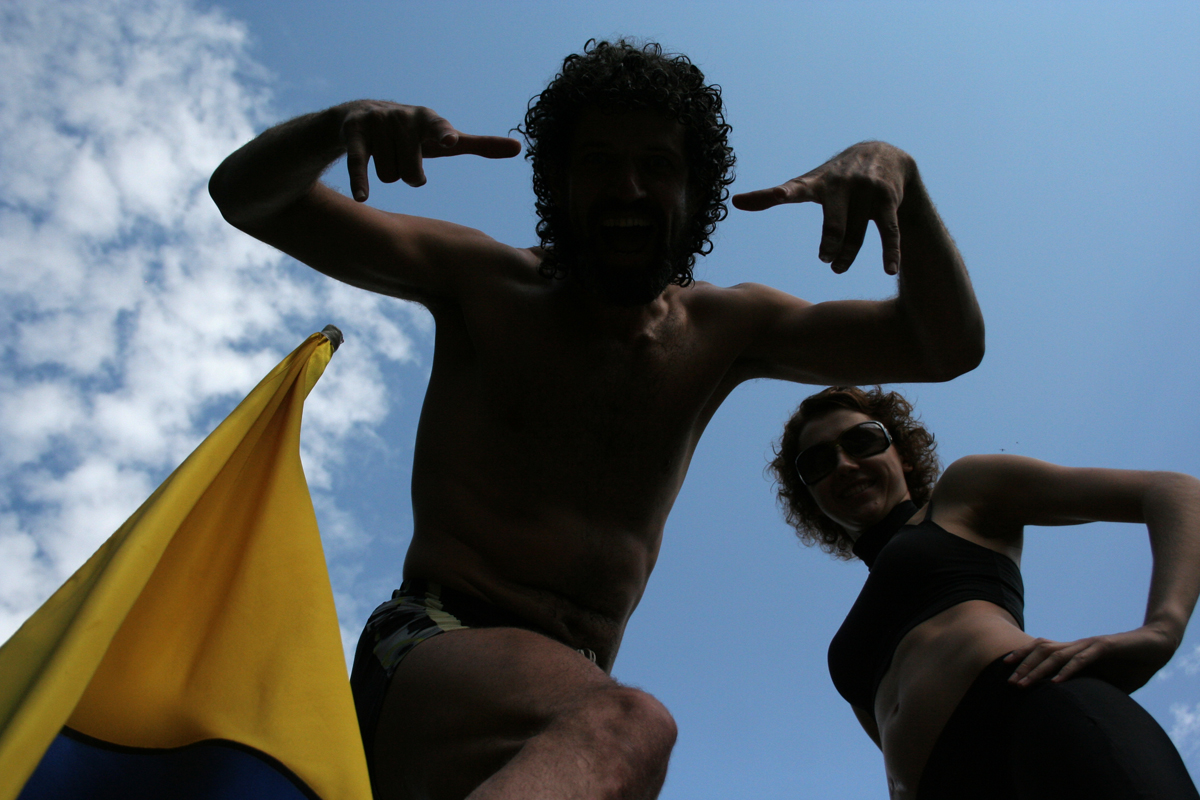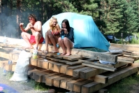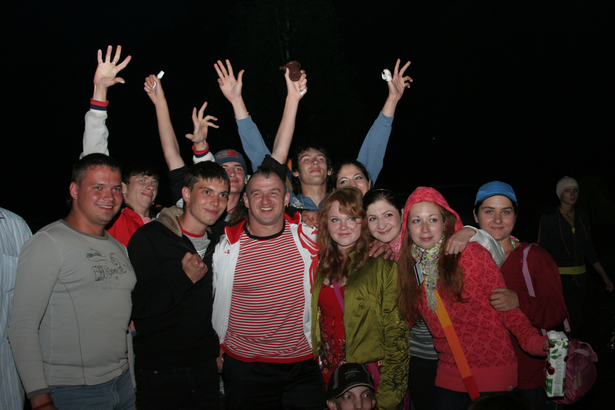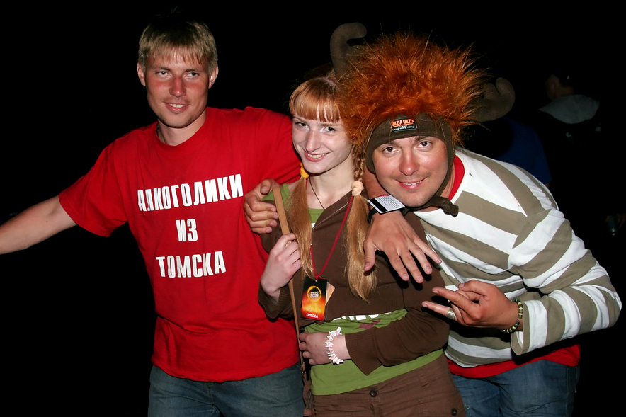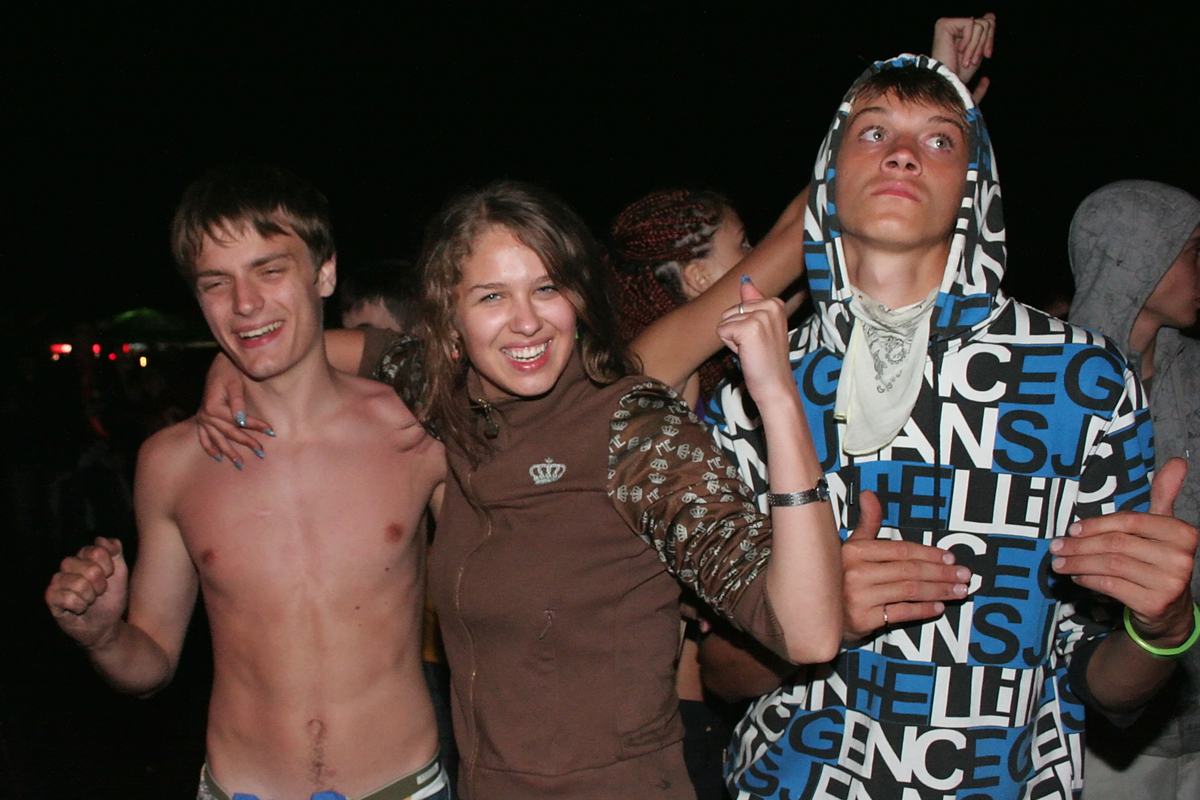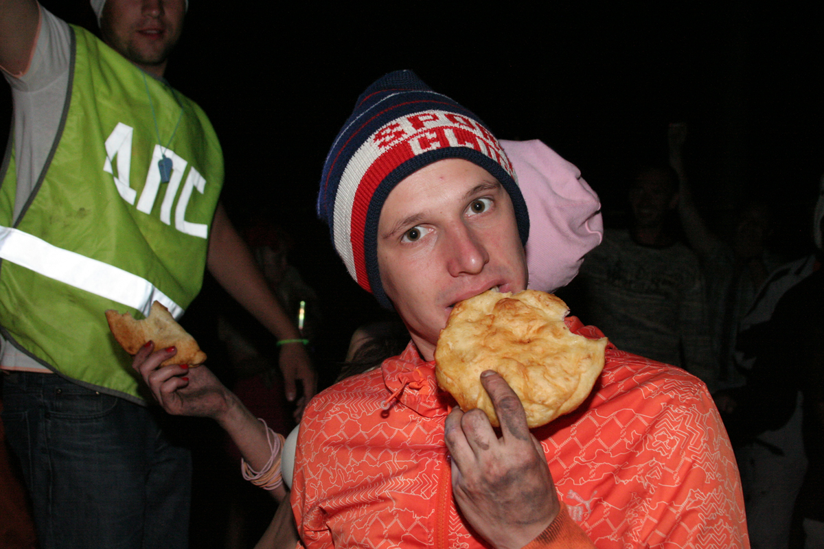 По поляне разъезжают автомобили с торчащими из окон и крыш "зазывалами" (девушками в купальниках и мужчинами в изрядной степени опьянения), которые предлагают всем веселиться и танцевать. Никто не спорит. Среди таких "зазывал" замечен экс-участник "Дома-2" Олег Казанцев, устроивший накануне ночью танцевальное шоу с налетом эротики на сцене. Теперь же в окружении девушек Олег размахивает флагом и выискивает своих земляков-барнаульцев в толпе фестивальщиков, позже на берегу реки он устроит еще одно шоу – чуть менее эротическое, зато более акробатическое.