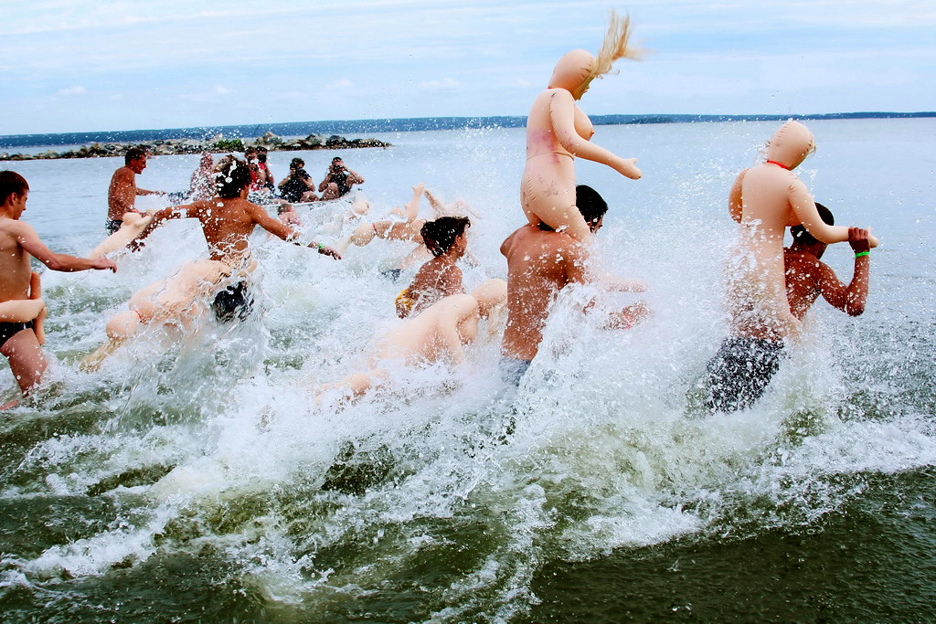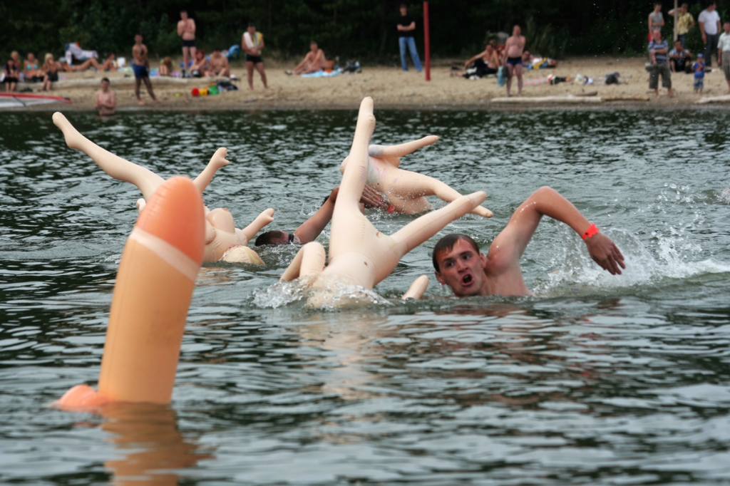 — Это буй, – спокойно поясняет девушка-организатор, – его тоже привезли из секс-шопа, вместе с бабами. Участники будут плыть до него и обратно.