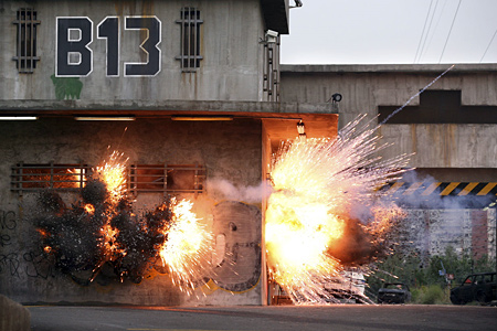 Однако манифест манифестом, это дело Бессона, а нам, простым зрителям, хотелось бы просто хорошее кино. Чем был хорош первый фильм, невзирая на смысловую нагрузку, приближающуюся к детской раскраске? Бешенным, плотным, набитым под завязку зрелищными сценами экшном. Зритель не успевал перевести дух, потому весь бред в диалогах и нестыковки логики в сюжете заходил в одно ухо, плавно по параболе огибал мозг и выходил в другое. Вторая часть началась с того, что лживая чиновничья братия подло обманула героев, стену не разрушила и справедливое светлое будущее строить отказалась. И теперь Дамьен бегает с минами наподобие "бомбермэна" и взрывает эту стену там, где может. А в районе правят банды, все плохо, разруха и голод.