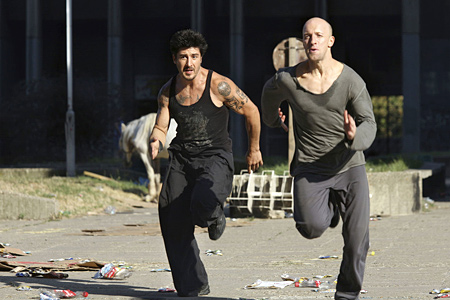 Так что на месте президента Франции я бы внимательнее присмотрелся к соотечественнику Люку, уж больно доходчиво он снимает свои агитки, обильно раскрашивая их в яркие цвета жанра экшн. Правда, вот его как раз в фильме и не хватало. Увлекшись обличительным пафосом, сценаристы приняли стратегически неверное решение: урезать паркур и драки и дать возможность главным героям поговорить на экране дольше, чем 20 секунд подряд. Давид Белль и Сирил Раффаэлли – клевые ребята, они уже всему миру доказали, что человек произошел от обезьян, но как актеры – полные нули. А русская озвучка в исполнении Тимати, Басты и прочих Батишт только усиливало градус уныния и желания кинуть чем-нибудь в экран во время разговора.