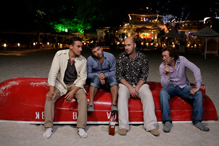 Итак, в фильме, попрощавшись с женами, детьми, секретаршами, собаками, горшками, деловыми партнерами и проектами, вдоволь наколебавшись "ехать-не ехать", четверо друзей (исполнители те же) отправляются к Черному морю. С разговорами и приключениями. И без того сложный жанр stand up comedy спектакля-исходника умножается на философскую подоплеку road movie с символическими поисками смысла на дороге жизни.