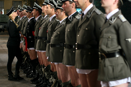 Ярким, а главное "свежим", стебом автору фильма показалось использование "запиканной" ненормативной лексики, а также лексики мест не столь отдаленных, и умелое обращение персонажей 40-х с техникой "нулевых". А как находчивые декораторы изнахратили раритетный Opel Admiral 1942 года, на котором рассекает "берлинские" улочки супергерой Шура Осечкин! Машину "преобразили" до смертельных судорог фанатичного коллекционера: навесили современные широкие бамперы, поставили литые диски, подсветку номера и сигнализацию. Картину довершил взяточник-гаишник, конечно же, истинный ариец.