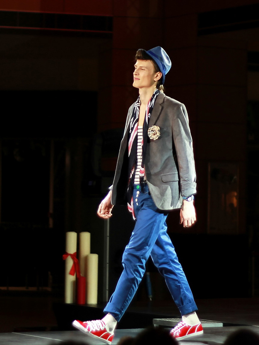 Что касается сильного пола, то Виктор Феоктистов (черный пуловер, открывающий воротничок и манжеты белоснежной рубашки, укороченные рукава, художественно завязанный серый шарф, обилие аксессуаров на руках – напульсники, кольца, часы с браслетом зооморфной расцветки) заметил, что на улицах Новосибирска встречаются хорошо одетые мужчины, но преобладают те, кому… гардероб подбирают женщины. А они традиционно склонные к ошибке, корректно названной Людмилой Соловьяновой "непонимание своего роста и веса":