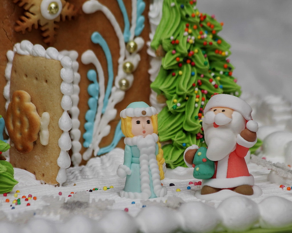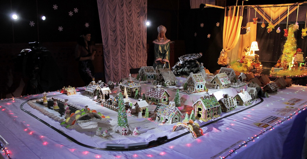 Предвосхищая "голодный" вопрос, скажем: есть пряничные домики и жителей города на выставке не разрешат, зато для всех гостей предусмотрены другие угощения, а домики можно будет купить после 5 января (стоимость от 500 рублей).